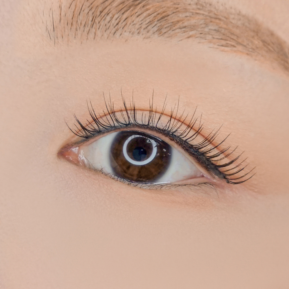 끝으로 갈수록 가늘어지도록 연삭된 모가 부착시 기존의 인모와 어우러지며 또렷하고 깊은 눈매를 연출합니다.