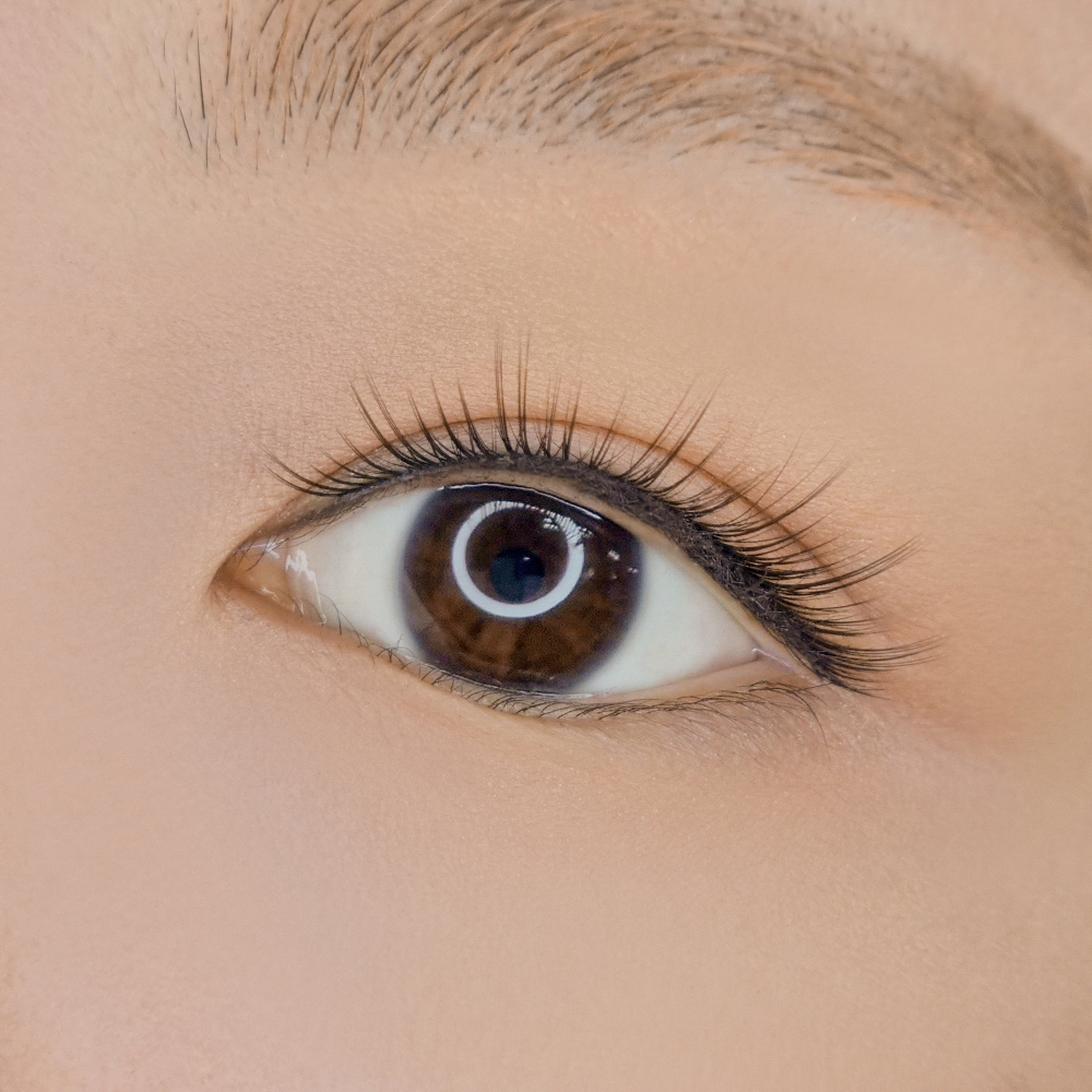 끝으로 갈수록 가늘어지도록 연삭된 모가 부착시 기존의 인모와 어우러지며 또렷하고 깊은 눈매를 연출합니다.